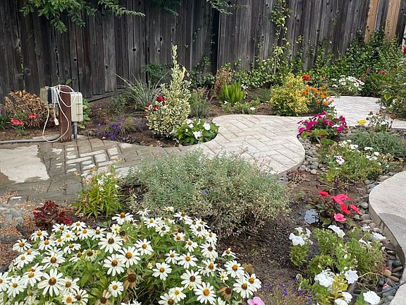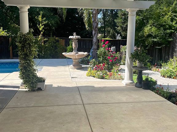 Step outside to a flower-filled backyard with a sparkling pool, perfect for entertaining or relaxing in your own private oasis.