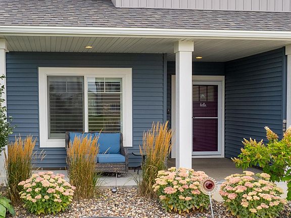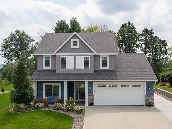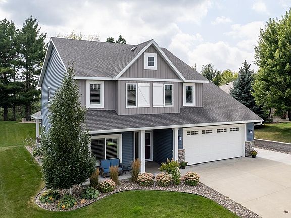 Discover elegance and comfort in this newer 2-story patio home located on the picturesque Zumbrota Golf Course. Boasting 3 bedrooms, 3 bathrooms, and a flexible den, this residence is designed for modern living. The open-concept layout seamlessly integrates the family room, kitchen, and dining areas, creating a spacious and inviting environment. The second floor features two bedrooms, primary suite and a convenient laundry room. Premium touches include granite countertops, tile and low maintenance flooring. You'll love the spacious, finished, 3-car heated garage, plus additional RV parking. The charming front porch enhances the home's appeal. Enjoy luxury living with breathtaking golf course views from the rear patio and sophisticated finishes throughout. You'll also appreciate the security camera system that has been installed by Custom Alarm. (Pendant lighting over island in kitchen is being replaced.)