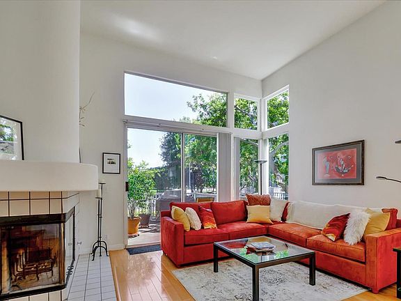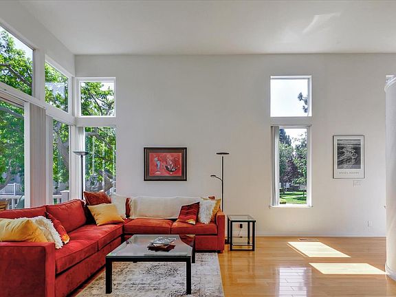 Dramatic Volante model featuring 3 bedrooms plus 3 full bathrooms on a choice corner location ensconced by mature landscaping. You'll love the versatile floor plan w/a bed/bath on the main level. Discover multiple home office opportunities on each level. This unique townhome is designed to bring the outdoors inside through imaginative use of imported glass block detailing, atrium window, skylight and soaring ceilings w/banks of upper windows capturing natural light. You'll appreciate the gleaming wood floors throughout, 18' ceilings, refreshed paint, radius corners, decorative niches & recessed lighting. Handsomely kept it sparkles reflecting the owner's pride. Enhancements include kitchen granite counters, beautiful updated cabinetry, Bosch gas range, Bosch microwave & S/S refrigerator. Large Trex deck. Sought after location w/only one common wall. Sparkling pool & bubbling spa on the RWS Lagoon. Walk to Sandpiper Elementary/Middle School.