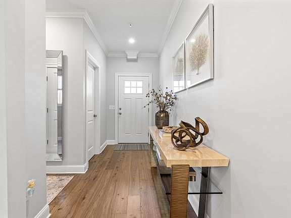 Built in 2021, this stunning two-story Clinton condominium blends modern style with timeless details. Offering 2 bedrooms, 2.5 baths, and 2,139 sq. ft. of living space, the open floor plan features hardwood throughout, crown molding, and thoughtful upgrades. The inviting living room boasts a fireplace and built-ins, while the chef’s kitchen impresses with shaker cabinets, stone counters, tile backsplash, oversized island, and bar seating. The primary suite includes a walk-in closet, double vanity, and tiled walk-in shower. Additional highlights include a second full bath, epoxy-coated garage floors, custom blinds, and a spacious two-car garage. With its refined finishes and functional design, this home offers comfort, convenience, and elegance in one.