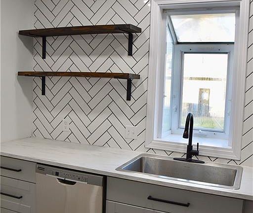 Completely renovated colonial in West Akron. Wonderful open concept floor plan. The large living area has a beautiful full tiled wall with electric fireplace. Bay windows allow tons of natural light to flow in. Huge floor to ceiling barn doors open up to the sunroom. The incredible kitchen features new 42 inch cabinets with unique wine storage, custom herringbone tile work, new stainless steel appliances, and a large island with a warm wood stained countertop. The dining area is located just off the kitchen. First floor laundry. A large office / 4th bedroom and full bathroom finish off the first level. Upstairs is the spacious master with a awesome custom walk in closet. A stunning remodeled bathroom features dual sinks and mirrors. 2 additional bedrooms. A nice covered patio for outdoor entertaining overlooks the private back yard. 2 car garage. New roof, gutters, furnace, central air, and electric panel. Basement has been waterproofed. Hurry as this home will not last long!