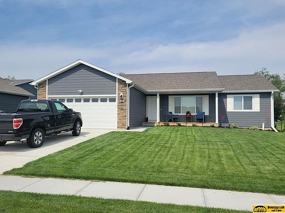Come view this newer construction in a growing neighborhood built in 2024. The seller has made some lovely improvements...this ranch has an open concept living, dining and kitchen. The kitchen with island, soft-close cabinets, pantry and all appliances will stay. The bedrooms are split with 2 bedrooms/bath on one side and other side primary with bath, updated walk-in closet with custom closet organizers. There is main floor laundry/mud room off of the garage and washer/dryer stay. The basement is unfinished w/egress window for future bedroom and rough-in for a lower level bath. The garage has been insulated, epoxy flooring installed and ceiling rack for storage. You will enjoy the lovely landscaping complete with sprinklers. There is a covered front porch and the backyard has a 20x20 patio. This home backs up to softball fields, tennis courts, city park, walking trails & schools. The trails follow along the development and take you to both the new elementary school & high school.