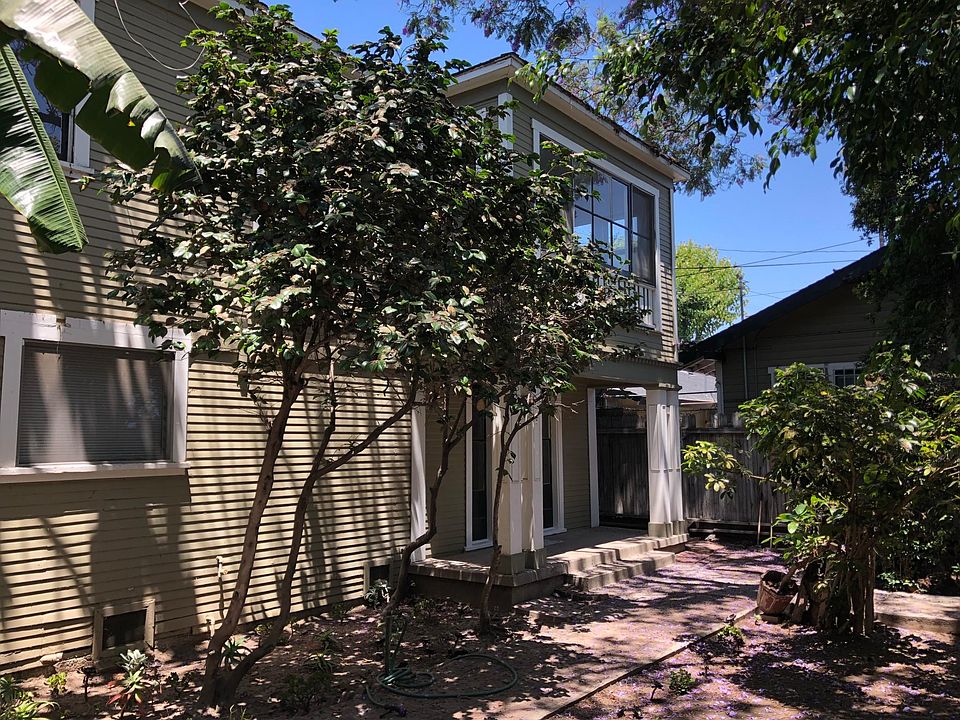 Set back behind large trees and a semi private courtyard is a 3 bedroom 1 bathroom California Craftsman House . All bedrooms have large closets and are very bright. Includes remodel kitchen with tiled counters and new wood cabinets. There is a small balcony off kitchen. There is one bathroom with subway tile shower and counters. The first floor has a garage and bedrooms/ family room / den. The den opens up to a large shared gated yard with mature fruit trees. Garage has direct entrance into house. Additional parking available for a fee in adjacent parking lot. Absolutely Must have above a 680 credit score. Working professional or students preferably. No parties. No section 8. Respond with credit score and occupation. Close to the beach, metro, retail downtown& gumbiner Park & great bars & restaurants on 4th street