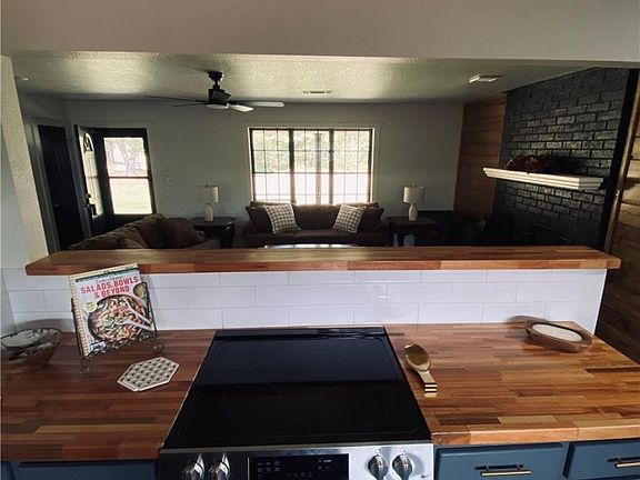 Enjoy country living yet just 5 minutes to shopping and restaurants. COME SEE THIS COMPLETELY RENOVATED HOME. 3BD, 2BA, 2 car garage. NEW ROOF. New knockdown texture & paint, LVP flooring throughout, new Frigidaire electric smooth top range with built in vent, new Frigidaire dishwasher, custom butcher block kitchen countertops, slide barn door to utility room, open concept with cozy wood burning fireplace. Elkay farmhouse sink. Adorned with metal accents in kitchen. Bath/shower combo in guest bathroom, sleek custom wood and tile walk-in shower in master en suite. A MUST SEE. Schedule a showing today.