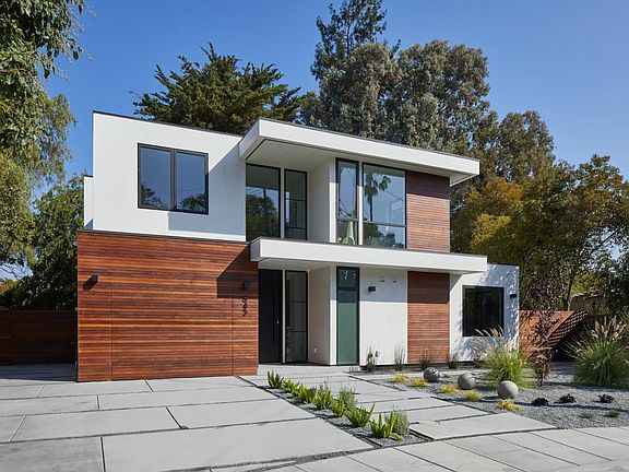 Spectacular newly built contemporary home in Midtown. Situated at the end of a quiet cul-de-sac, this stunning home features a well thought out, open concept layout on the ground floor with large sliding doors that open to an impressive backyard for indoor/outdoor living year-round. The sleek kitchen includes custom cabinetry and a full suite of Miele appliances. A stylish three-sided gas fireplace is the focal point of the living and dining rooms. Find four bedrooms upstairs including the sophisticated primary bedroom with private balcony, double walk-in closets, and spa-like bathroom. The sizable backyard includes several living areas, outdoor kitchen, mature trees and drought-tolerant landscaping. Built with high-end materials, luxe finishes, and superior craftsmanship, this home is exceptional in every way. Central location just blocks away from shops, restaurants, and cafes with easy access to everything Palo Alto has to offer. Near highly rated Palo Alto schools and Stanford.