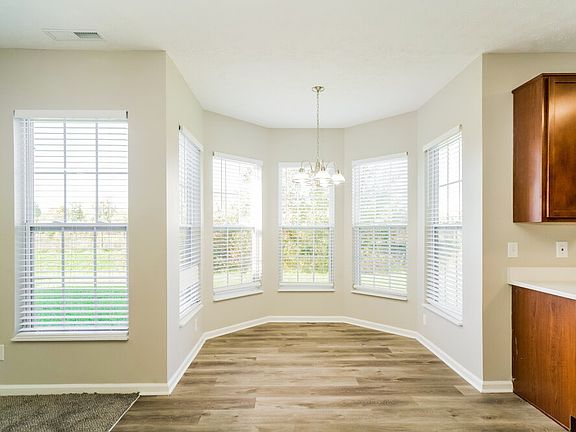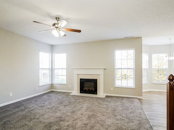 This beautiful two-story rental home just east of Indianapolis offers four bedrooms and two and a half bathrooms in its more than 2,100 square feet. Get some work done in the roomy office downstairs. Adjacent is the living room with a striking fireplace. Easily cook meals in the kitchen thanks to its large island and modern stainless steel appliances. At the end of a long day, retreat to the master bedroom, complete with cozy carpeting, a ceiling fan, and an en-suite bathroom with dual vanity sinks and a soaking tub. Call today to schedule your viewing.