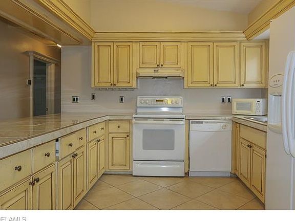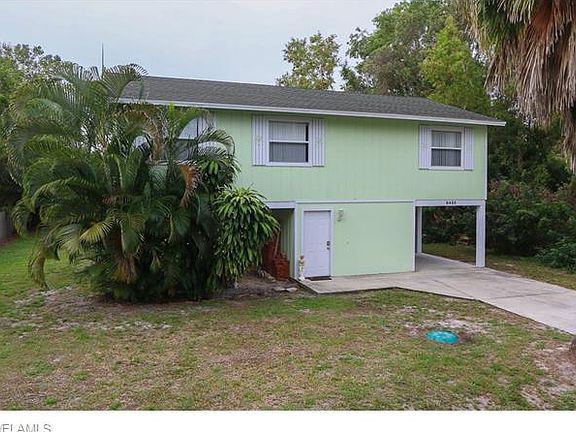 Fantastic price for a move-in ready home with lots of upgrades on large lot in south Ft. Myers. This piling home has been well-cared for. Enter the front door to a foyer with open staircase to the great room. The living room features crown molding and chair rail, cove ceiling with recessed lightings. Upgraded molding around the windows. Living area opens to a large kitchen with dining area featuring columns, crown molding and wainscotting. Spacious kitchen with upgraded wood cabinets. Large deck off the main living area overlooks a private yard. Master bedroom features ensuite bath with shower. Guest bath has upgraded vanity and tile in bath/shower. Other upgrades raised panel doors, tile floors in kitchen, baths and hall. Washer, dryer hook up downstairs. Brand new water heater. Roof new in 2007. Newer septic and HVAC. Extra insulation underneath the home. Large area under home for parking, storage, etc.