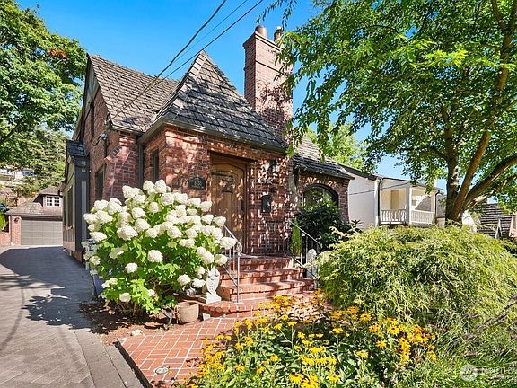 New Price!! Nestled in Seattle's desirable Fauntleroy neighborhood, this timeless 1931 brick Tudor blends original charm with thoughtful updates. Classic details include arched doorways, original hardwood doors with vintage hardware, and built-ins throughout. The main level features a spacious kitchen with dining nook, formal dining, light-filled living room, 2 bedrooms and a full bath. Upstairs offers a second bathroom, and 3 bedrooms, one of which is ideal for a Primary suite as it has beautiful french doors & a walk in closet.. The unfinished basement offers great storage space or expansion potential, while the fenced backyard boasts a deck, patio, and terraced gardens—perfect for relaxing or entertaining.