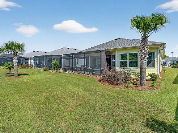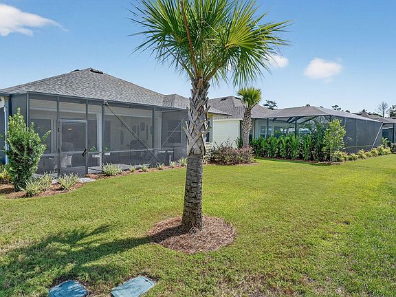 Why wait to build when you can have this incredible Breeze Bay Beach Collection home NOW! Seller's were part time so it's basically a new home! In Phase 3 so it's close to the wonderful amenities at Latitude Margaritaville. Pavers in driveway which was widened for room for a golf cart! Nice size entry has a custom keydrop area. The den has custom cabinets and glass French doors! 42'' cabinets in kitchen with beautiful large Cambria countertops for entertaining. Navy tile backsplash adds style to the kitchen! The Living room is huge! Plenty of room for all types of furniture with brass outlet in the floor. The dining niche has custom board and batton on the wall for added decorative flair! The master is large with a trey ceiling and two large closets . The bathroom has dual sink areas with the tiled shower having a custom sitting area in the corner, seamless glass around the shower. Both full baths have extended wall tile to ceiling. The laundry room has a sink and upper cabinets. The screened lanai is extended and has a wooded preserve behind it for a nice relaxing environment! The garage floor is finished with epoxy. Motion sensor lights on corners of home, as well as gutters on all four sides The golf cart is for sale as well as all furnture, too!