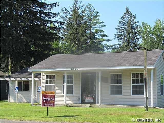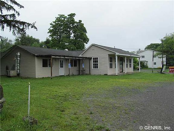 Owner finance! 1952 SF builing, on 7.54 acres,large parking area for 35+ cars. High traffic area between Rt 104 and Sodus. Could be used for many purposes. Previously a restaurant with all equiptment. Sold "as is" ,Submit offer, must sell