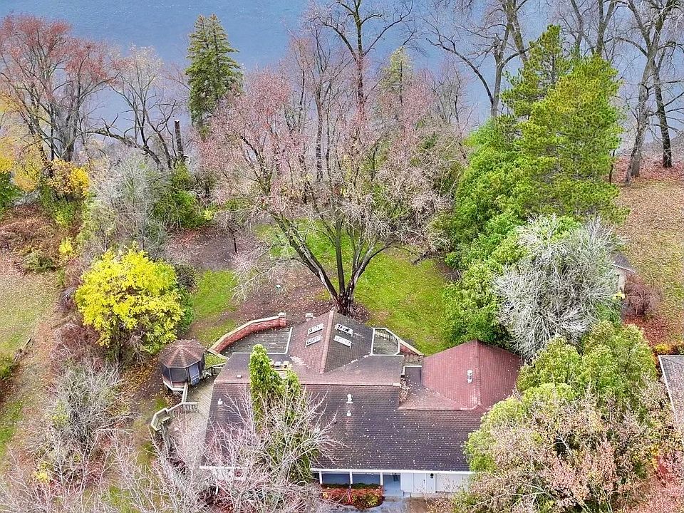 Nestled upon a sprawling .65 acre waterfront lot in a quiet neighborhood, this single-story haven beckons with unparalleled riverfront luxury. Immerse yourself in the majesty of the Mississippi River, where breathtaking vistas dance across the horizon. This 2,675 square foot residence, with its 4 bedrooms and 2 baths, offers the perfect canvas. Step inside and discover a haven of comfort, featuring central air conditioning, central heating, 4 cozy fireplaces, a gorgeous vaulted rear facing porch along with a beautiful tongue and groove bonus room behind the garage and a walkout basement. Embrace outdoor living on the expansive deck and balcony, perfect for entertaining or al fresco dining under the stars. A serene spa awaits, offering a sanctuary of tranquility. While this elegant abode is in need of some modern updates, its prime location is the epitome of "location, location, location" ensuring a future brimming with potential and an extraordinary opportunity to transform this riverfront gem into your own personal paradise.