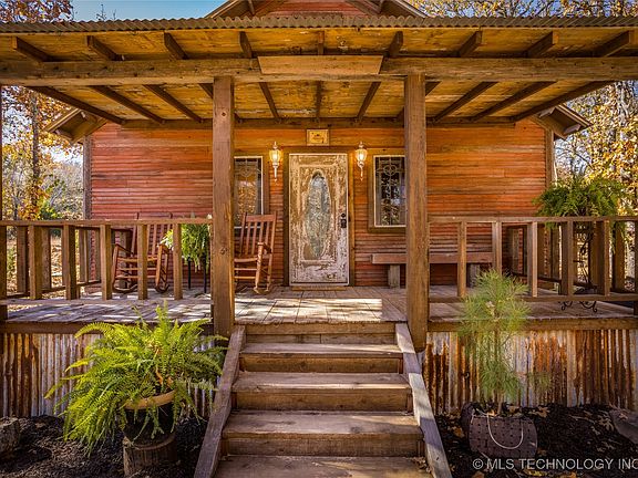 Located just minutes from the Blue River's best trout fishing, Blake Shelton's Ole Red/The Doghouse & Lake Texoma, THIS is certain to become your favorite cabin in the woods! With just over 24 acres there's plenty of room to enjoy the quit but also close to town. The cabins details where all hand-picked for construction. From reclaimed barn wood to vintage tin, you'll experience all the charm, character, and charisma of old-time architecture combined w/ modern hospitality on this cabin built in 2021. Inside features a gas fireplace, custom bunk room, free-standing tub & more. Outside includes a gorgeous pond, multiple firepits, BBQ grill and native wildlife. Located just 2.2 miles from Old Silo Winery, 4.8 miles from Scotty's Blue River One Stop, and 6.3 miles from Ole Red, Mulberry Wine Bar, and all the other awesome shops on Main Street in Tishomingo, there is plenty to do! Or, just relaxing on the covered front porch is hard to beat! The main room boasts an open, yet cozy living area, with the queen bedroom area, living room and kitchen together in one open area anchored by a stone hearth and gas fireplace! Truly a dreamy backdrop for any season. The middle of the cabin features a built-in bunk room. There's also a full bathroom with a shower and stacked washer/dryer off of the bunk room. In the back of the cabin you'll find a nice bedroom, fun loft room, storage room and optional bonus room. the cabin has a great track record via short term rental and only 5 star ratings! Listing agent is related to seller.