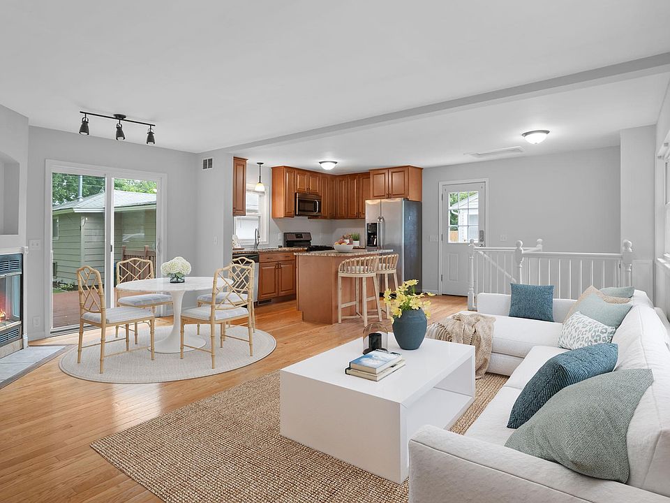 This is THE one! So many updates throughout, plus a super open floor plan. Enjoy the large kitchen with center island, newer cabinets, granite countertops, and stainless steel appliances. The main level is perfect for hosting and features hardwood floors, a fireplace and abundant natural light from maintenance free vinyl windows. There are 3 bedrooms, 2 updated bathrooms, and a nicely finished basement with recessed lighting, new carpet and fresh paint. Step outside to a large cedar deck overlooking the fenced yard—perfect for fall bonfires, grilling and playing catch. The large garage has an attached addition off the back providing tons of storage. Seriously though you dont want to miss this one!