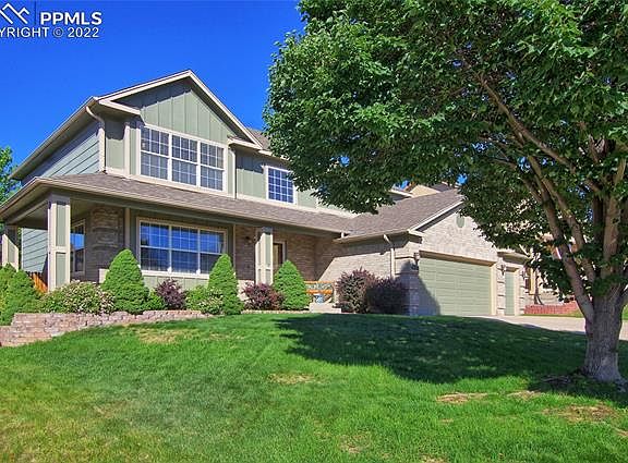 Check out this spectacular 2-story home in D20! Great curb appeal with mature trees and bushes. The east-facing front porch is great for those hot afternoons or morning coffee in the sun. Walking into the main level, you'll find a large living room, dining room, open kitchen, and family room. There is plenty of counter space at the eat-in island, a large pantry, and beautiful, recently updated French doors leading to the back deck with mature trees, plush grass, and a gazebo offering plenty of shade for those summer BBQs. The upstairs features the master bedroom with a 5-piece en suite bathroom and a walk-in closet. There are two other bedrooms upstairs, one with French doors that would be perfect for a quiet office space. You'll be wowed with this basement featuring a large open 2nd family room/media room with surround sound, an electric fireplace, and a wet bar/kitchenette for watching the game or movie night. Guest will have their own space with the large fourth bedroom and 3/4 bath. You can't beat the location! Near shopping, restaurants, and easy access to Powers Blvd and I25. Call for your showing before it's gone!