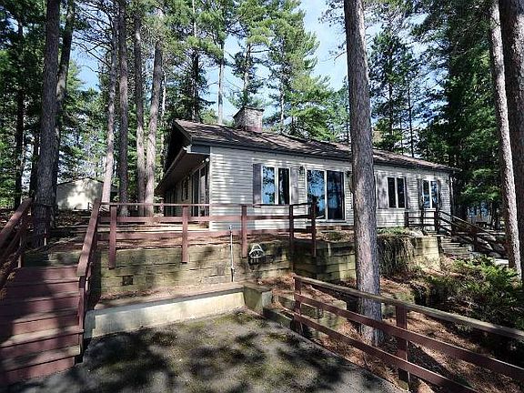 The place that dreams are made of! The Minocqua Chain of Lakes - legendary for waterfront recreation for generations. This property is your ticket; your gathering place for making memories - right at water's edge! Savvy sellers used a former building site to locate this comfortable 3 bed / 3 bath retreat close to the sandy shores of Lake Kawaguesaga. Wake up to sunrise across the water with a mug of coffee and a front row seat on the pine studded deck. Later, take the boat for a spin - it's in your private boat house! Thousands of acres of water fun! Let's go to the waterski show or get lunch on the chain. It's fun! Storage is no problem with the 3+ car garage, and you can work on the snow sleds with the heat on. Main floor master suite, and room for family, guests, friends! Cozy fireplace, vaulted ceilings, bright open concept. A winner! And, just a few minutes to all the amenities of Minocqua. Really nice price too - and furnishings are negotiable. Going, going - YOURS!