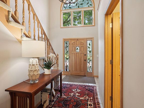 This classic and stately home has been impeccably maintained to making it easy for you to transition to a new home. Situated on a beautiful wooded, fenced lot with great access from the main or walkout levels or enjoyed from the upper deck of covered patio overlooking the pond beyond. Custom stained glass designed out of the Gaytee-Palmer studio who's works are featured throughout the metro. There is room in this home for all types of gatherings as well as having a dedicated office on the main floor, 3 bedrooms on the upper level, and a spacious walk-out level including a 4th bedroom. Enjoy nearby trails with beautiful parks, Weaver Lake, schools and The Shoppes at Arbor Lakes close at hand. Work hard, play hard, relax and enjoy your surroundings.