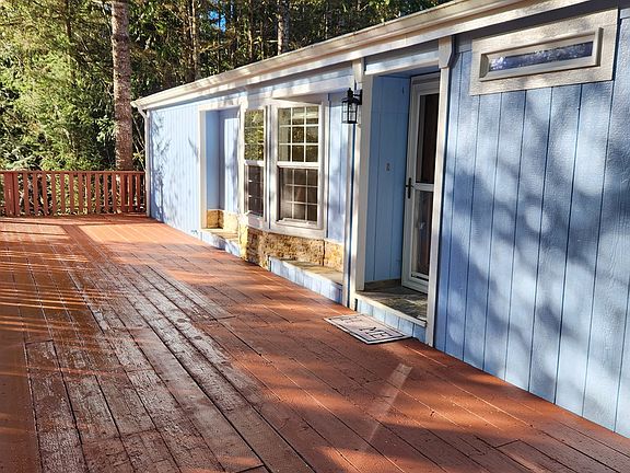 MOVE IN READY HOME - Come take a look at this 3 bed/ 2 bath 1296 sq ft Manufactured home located in Dune City, It sits on .97 private treed acre lot. Drive up the long driveway and on your left you will see a 20 x 20 metal Barn (no power) and 8 x 14 Shed (no power) You open the gate leading to the front of the home and There is a 14 x 50 front deck. The Livingroom room has vaulted ceilings and skylights to bring in the natural light. Primary bedroom and bath on one side of home, bath has a new walk in shower & Granite counters tops. Sliding glass door in dining room leads to covered porch, fenced in back yard with a greenhouse. Second bedroom has door leading out to front deck. Many Upgrades over the years, New roof and Skylights in 2021, new well in 2019. 21 gallons a minute. New water filtration system. Hot water tank, flooring throughout entire home, paint inside and out, plumbing upgrade, hot water tank. This home is wired for generator hookup to the home during power outages. Double car garage, 8 x 10 shed. Close to Honeyman State Park, Sand dunes, Woahink Lake and Darlings Marina. See it today.
