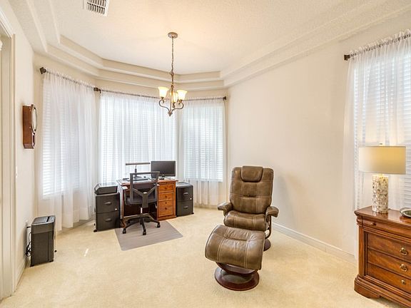 This beautiful pool home is located on the cul-de-sac in the highly sought after gated and golf community of Glen Lakes. Home features: lovely views and an airy open and split floor plan with 12-foot high ceilings, crown molding. 3 bedrooms, plus an office/den with french doors, 3 full bathrooms. The kitchen has lots of storage and pretty 42' cabinetry, granite countertops, stainless steel appliance package, and a huge walk-in pantry. The primary suite has a large sitting area and two walk-in closets. The primary bathroom features double sinks, separate shower, and garden tub. The home also includes an inside utility room with pretty cabinetry and a sink. Step out and relax in the pool or just enjoy the scenery within your own piece of paradise and within the comfort of the screened lanai. The home's layout is great for entertaining guests too. And for anyone who loves to golf ... you will really love this golf course too! Hurry don't delay schedule your private tour today.