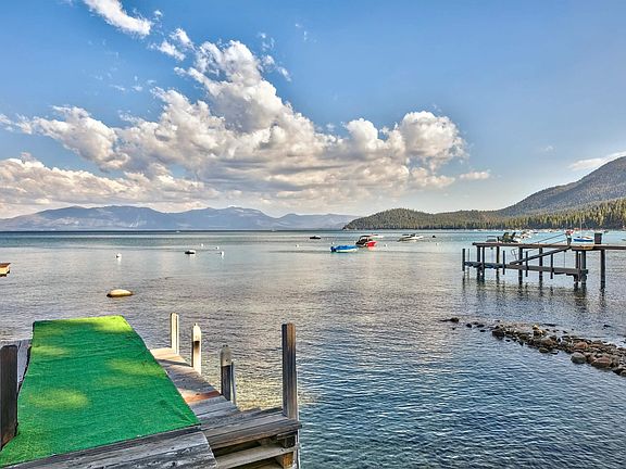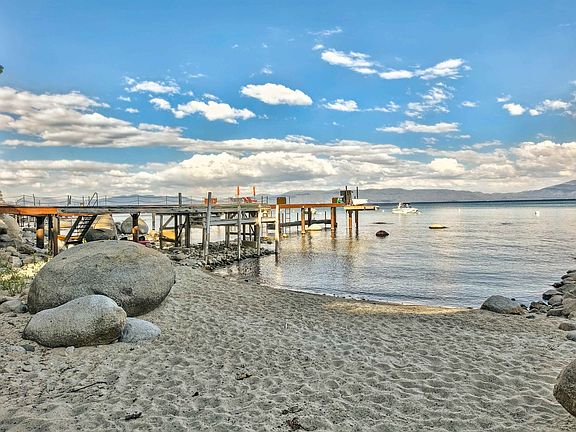 Front seat on the most magical water in Lake Tahoe: clean Old Tahoe lakefront home with private pier. Property is located right in the center of the hugest swath of Tahoe's "destination turquoise" where shallow water meets the deep. Commanding siting with terrific views. Rare sandy beach with just a couple gorgeous boulders in the right spots - enjoy deep Tahoe sand in almost all yearly tide levels. 1 buoy. Home has been in the family 50 years and will likely be with next owner for the same or more.