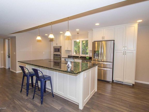 Amazing ''like new'' 2 story set on nearly 5 wooded acres between Brandon and Garfield and a block from Lake Chippewa. Completely remodeled with nothing but the finest finishing's. Custom white kitchen with granite & stainless appliances, complete bathroom remodels, beautiful flooring throughout, owners suite with tile walk in shower,new shingles with spray foam insulation. There is room for more bedrooms and family room in the unfinished lower level. 36x54 pole shed, perennial gardens & back yard patio that will amaze! Don't miss the drone video under the photo tab.