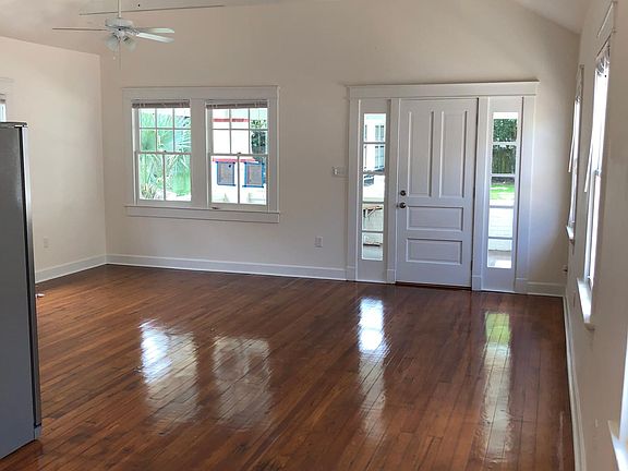 This beautiful, light-filled apartment in a gorgeous New Orleans cottage underwent a complete, top-to-bottom renovation a few years ago! It features two independent bedrooms (NOT a shotgun) and a spacious, loft-like kitchen/dining/living great room with cathedral ceilings that are 14-feet high with wood beams. The kitchen has black granite counter tops and stainless steel appliances, including a dishwasher and built-in microwave. The lovely bathroom features marble tiles and counter top, dark slate floors, and a full size washer and dryer. Beautifully refinished original hardwood floors throughout the apartment and high ceilings in the two independent bedrooms (no need to walk through one bedroom to get through the other). Central air-conditioning/heat and a high-efficiency water heater, plus plenty of insulation to help keep your bills low. The apartment is 1000 square feet and occupies the entire front of the building, so the enormous front porch (an additional 200 square feet) will be entirely yours to enjoy. A private, shaded space to be outdoors, relax, and socialize. The uptown, Carrollton location is fabulous. Very friendly neighbors on this beautifully maintained, quiet street, full of lovely large houses and adorable cottages. You'll be steps to pretty Palmer Park, the amazing Bellegarde Bakery (the best bread, baked goods, and fresh pasta in the city), Robert Fresh Market, Panola Street Cafe, and Walgreens. Just a quick stroll to the restaurants and coffee shops on Carrollton Avenue, the St Charles Street Car line, and the boutiques, restaurants, yoga studios, and music venues on Oak Street. Close to Tulane, Loyola, and Ochsner, and a quick trip to the CBD and the French Quarter. Very responsive, considerate owners. Rent is $1670/month plus utilities. Pets considered on a case by case basis.