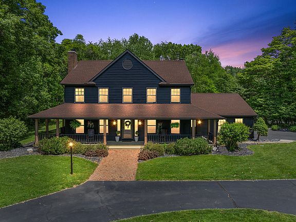 Welcome Home to this stunning 4-bedroom, 2.5 bath in Timber Highlands! The property boasts an impressive 1+ acre setting complete with mature trees, wraparound porch, & circular drive. Spacious flowing floor plan with beautiful hardwood floors throughout and lots of natural light. The formal living room features a gas fireplace & opens up into the formal dining room. Updated kitchen with quartz counters + stainless appliances including island microwave, & breakfast nook overlooks the family room with wood fireplace. Mud room/laundry room located off deep 3 car garage. Office has custom built-ins. The spacious primary suite is complete with cathedral ceilings, sitting area, walk-in closet with custom organization, and new ensuite bath like no other. Garage with gate on side street. BATVAI