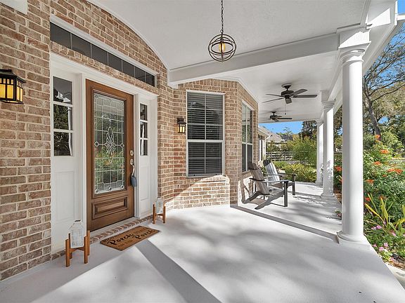 Peaceful 2-story retreat set on 1.67 wooded acres in a private gated community near Lake Conroe. Features include wood floors, crown molding, Craftsman-style study, formal dining, and dual staircases. Kitchen offers granite counters, stainless appliances, double ovens, newer gas cooktop, bar seating & pantry. Spacious primary suite has a coffered ceiling, 2 walk-in closets w/built-ins, ensuite & private porch access. Living room has built-ins, high ceilings and windows overlooking back yard. 3 bedrooms, game room & 1 extra room up, plus bookcase. Covered front & back porches w/stained concrete, fire pit & extended sprinkler system. Shed has electric, shelving & A/C. 5-year-old roof, newer water heaters, newer water softener, newer exterior fans. Insulated garage w/sink & storage & a decked attic. Additional hose bib by driveway. MISD schools, 2 lakes, 2 parks & close to schools, shopping, restaurants & entertainment. Room to garden, play & entertain—so much potential! Don’t miss out!