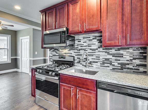 Adorable White Brick Bungalow COMPLETELY REHABBED featuring 4 bedrooms and 3 full baths!! Warm neutral colors throughout this charming and welcoming home. Gleaming hardwood floors on main level with 2 bedrooms. Bathrooms have all been remodeled with high end fixtures and amazing tile work. Kitchen is a chefs dream with all new stainless steel appliances, cherry colored cabinets, granite counter tops with decorative back splash. 2 bedrooms on main level or Retire to the second floor huge MASTER SUITE WITH MASTER BATH. Enjoy even more space in the finished basement with a large family room, another bedroom, great size laundry room PLUS a 2 car garage, nice size backyard with lots of curb appeal. Bring your buyers to this one it will not last long on the market. Fabulous REHAB!!