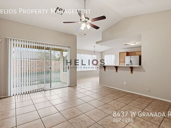 Clean, bright, and move-in readythis single-level home offers modern convenience in a highly accessible West Phoenix location. The interior features an open-concept floor plan, vaulted ceilings, and tile flooring throughout for a low-maintenance living experience. The kitchen includes stainless steel appliances, a gas range, and plenty of storage space, all open to the living and dining areas. The primary suite features a large walk-in closet and private bath. A full-size washer and dryer, attached 2-car garage, and private, block-fenced backyard add everyday functionality. Situated near major routes (I-10 and Loop 101), this home offers quick access to shopping, restaurants, and major employers across the West Valley. Home Features: 2 bedrooms / 2 full bathrooms Attached 2-car garage Open floor plan with vaulted ceilings Stainless steel appliances Gas stove / range Tile flooring throughout no carpet Full-size washer & dryer included Private, low-maintenance backyard with block wall Central air and ceiling fans Nearby Highlights: Close to Westgate Entertainment District, Desert Sky Mall, Banner Estrella Hospital, and multiple parks. Easy freeway access to downtown Phoenix, Glendale, and Goodyear. $1595.00 per month rent, $1595.00 Refundable Security Deposit, $200 Admin Fee, $300 per pet Non-Refundable Pet Fee (per approved pet), $50 per pet Monthly Pet Rent (per approved pet). $29 per month Energy and Preventive Maintenance program. Facts and figures are provided to the best of Helios Property Management's ability but are not guaranteed to be accurate. You are encouraged to verify any fact or figure materially relevant to you and your decision to rent this home. The Landlord requires coverage of $100,000 of liability coverage per the lease agreement. This requirement can be fulfilled by either a Renters Insurance policy or a Tenant Liability policy. Equal housing opportunity. Move in special is with immediate occupancy and well qualified applicants only.