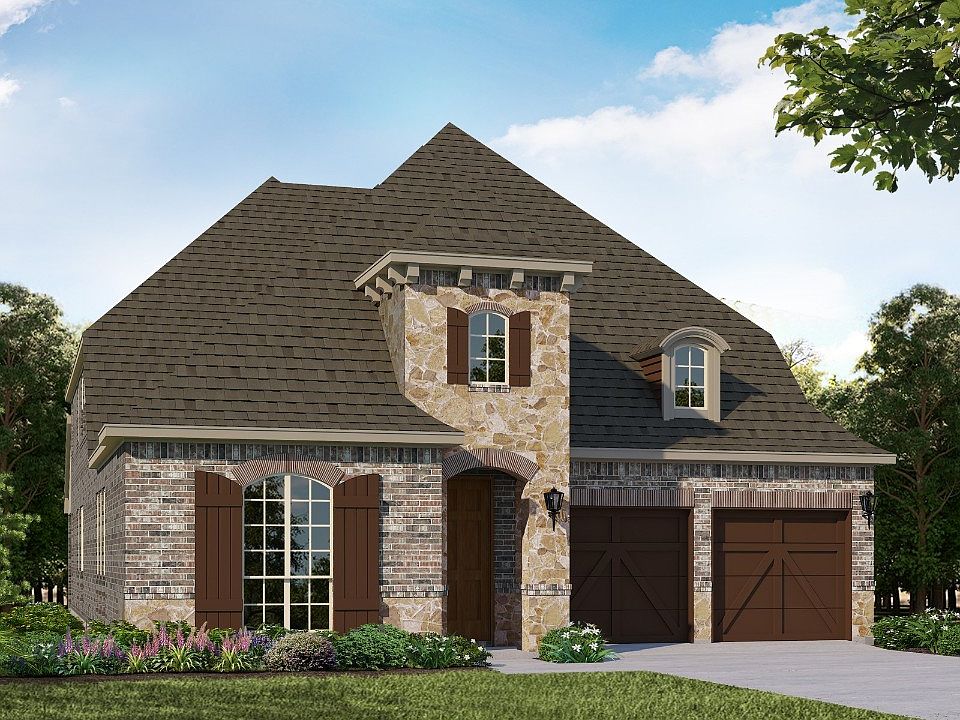 This stunning home is located on a HUGE NW facing home site that is 10,864 SF allowing plenty of room for a pool and separate entertaining space. Exterior selections include Acme Winterstone brick and Blanco Chopped Stone. Inside you'll find luxurious designer finishes throughout! The kitchen features perimeter cabinets that extend to the ceiling and painted white, as well as a dark stained island. Among the other kitchen design details are the undulated tile backsplash, quartz countertops, 6-burner cooktop, double oven, apron front sink, and angled wood hood. The family room has soaring ceilings, a white painted brick fireplace surround that extends 12' in height, built-in cabinets, and multi-sliding doors that lead out to the expansive patio and backyard. January 2023 Completion!