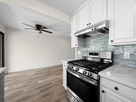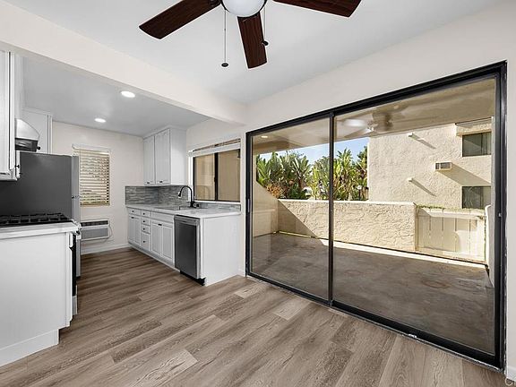 Best location in the complex – situated in the heart of Mira Mesa! This completely move-in-ready, lower-level, fully renovated condo offers one bedroom, one bathroom, in-unit laundry, and a bright, open layout. Featuring brand new luxury vinyl wide plank flooring throughout (no carpet) and freshly painted interiors, this unit exudes a fresh, contemporary feel. The remodeled kitchen boasts stainless steel appliances, granite countertops, and beautiful cabinets. The updated bathroom includes custom tile work, tiled floors, and a new vanity for a modern touch. The large bedroom also offers amazing storage space. The unit also has new window blinds, new doors, and a private patio with laundry facilities in the closet – perfect for enjoying tranquil views. Residents can take advantage of resort-style amenities, including a pool and jacuzzi, all set amidst lush, mature landscaping. With one designated covered parking space next to the unit for added convenience, this home is ideally located within walking distance of shopping, restaurants, Mira Mesa Community Park, the library, and more.