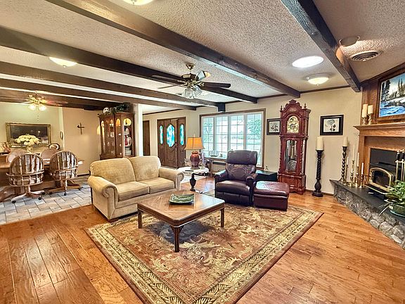 Really nice custom built county home. Large living room with an open concept and massive stone fireplace. The functional kitchen has plenty of countertop space and a breakfast bar plus a large pantry. A huge master bedroom features a private bathroom with double sinks and a shower. The three guest bedrooms share a large hall bathroom. Doing laundry will be a breeze in the workable utility room. It has a sink and tons of storage plus another bathroom. The double garage has a safe room nestled in the corner. There is also a nice 2nd house with one bedroom, one bathroom, a basement, a large utility room and 3 car garage. The main house has approximately 3,076 SF and the small house has 1,234. Solar panels, generator, new septic system plus a windmill on 6 acres.