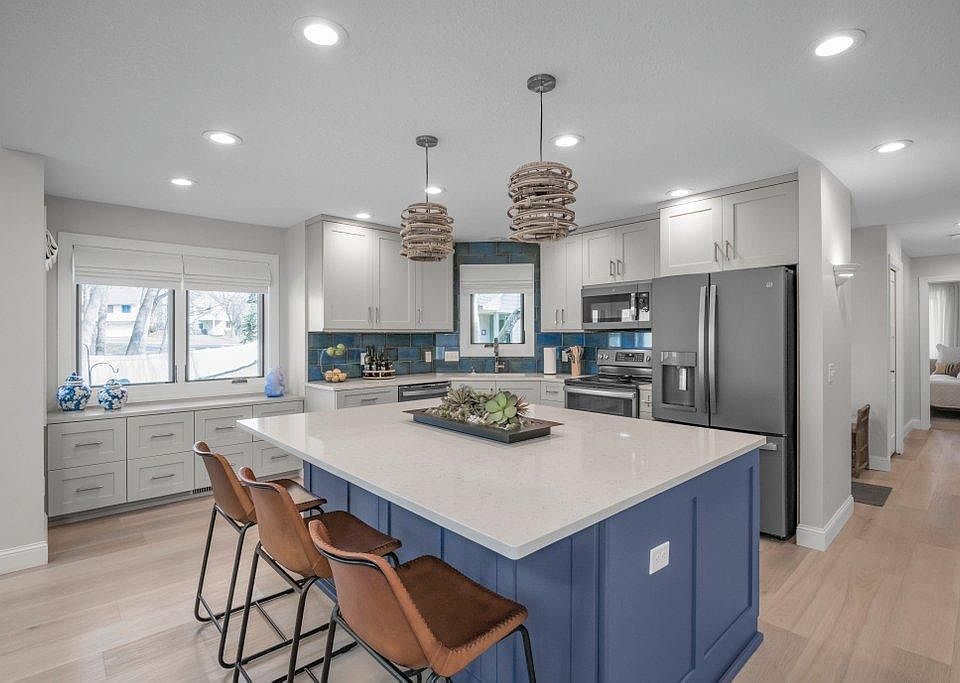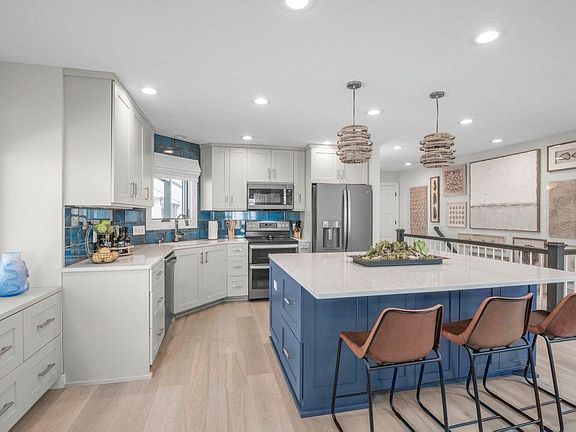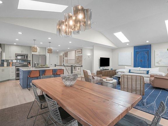 The home features an open-concept kitchen, dining, and living room area, along with a second
