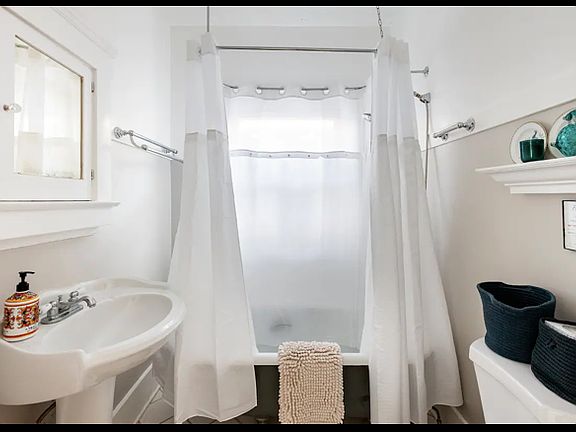The building is an exceptionally maintained historic 4-plex built in 1906 that celebrates the quality of time-tested craft, design, and charm. The built-in dining cabinets are mahogany, and a requisite fireplace is conveniently upgraded to gas. In keeping with the allure, yet offering full functionality, the bathroom features a clawfoot tub and pedestal sink. A fully functional, vintage stove creates the ideal kitchen setting.