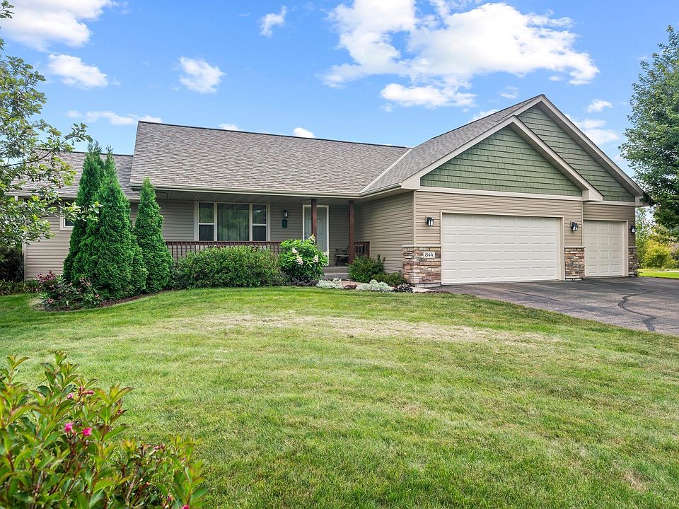 Welcome to 844 Brady Lane in New Richmond — a warm and inviting 3-bedroom, 3-bath home tucked away in the peaceful Lake View Estates neighborhood. Built in 2015, this beautifully cared-for home blends modern comfort with small-town charm. Step inside to an open-concept layout filled with natural light, vaulted ceilings, and a cozy fireplace that anchors the living space. The kitchen features a center island, stainless steel appliances, and plenty of storage, flowing seamlessly into a bright sunroom perfect for morning coffee or relaxing evenings. The lower level adds a spacious family room, a comfortable guest bedroom, a full bath, and a dedicated workshop for hobbies or crafts. Outside, enjoy a deck overlooking the backyard, an attached 3-car garage, and a detached workshop garage offering extra space for projects or storage. With new paint & carpet, tasteful finishes, and a quiet setting just minutes from New Richmond’s shops and parks, this home feels welcoming from the moment you arrive.