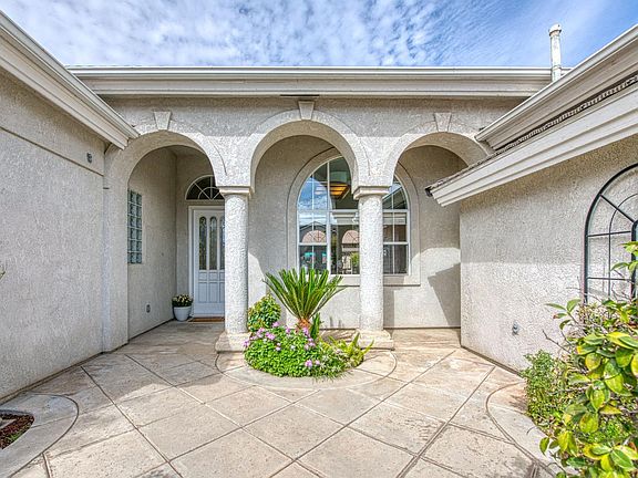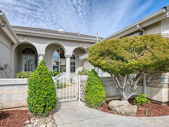 Welcome home to Nees Park Place! This charming gated community in NE Fresno offers convenience and style. Step through a private courtyard into a light-filled home with soaring ceilings, dramatic arched windows(one in kitchen and 3 in living space)and an open inviting floor plan. The living room features built-in bookcases and a cozy fireplace with dining. A large kitchen with barrel ceiling, granite counters, island, gas range, and large pantry is perfect for cooking and entertaining. The spacious primary suite with built-ins creates a relaxing retreat, sliding door, plantation shudders to the back yard, double sinks, soaking tub, large shower and spacious walk-in closet. The home shows as a two bedroom although a third bonus room which is currently an office with built-in desk and bookcase could also be a bedroom or flex space. Laundry room with sink and cabinets. The serene patio and back yard is a welcomed retreat after a long day. The community pool and club house add to the retreat style life you will have at Nees Parkplace. Endless possibilities just waiting for you!