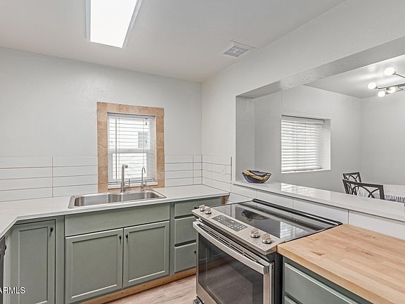 Charming 3-bed, 2-bath home, with neutral palette, ready for your personal touches. An ideal opportunity for a first-time home buyer to step into ownership, with room to grow & build equity. The upgraded kitchen features modern updates such as quartz countertops and many drawers for convenience, as well as down - to - the - studs new plumbing, including a dishwasher. All appliances are included. Oversized sink with reverse osmosis drinking water, at kitchen sink. Ceramic flooring throughout the home for easy maintenance. Energy efficient dual-pane windows, installed 5 years ago, which have a 10 yr warranty that is transferrable to the new owner. Both bathrooms completely remodeled in 2022, incl all new drains and plumbing. Designer touches, such as upgraded shower fixtures and faucets, vanities, and custom tile work. Washer & dryer included in laundry room along with a utility sink. Large covered back patio. Ask for our Home Upgrades & Improvements List!