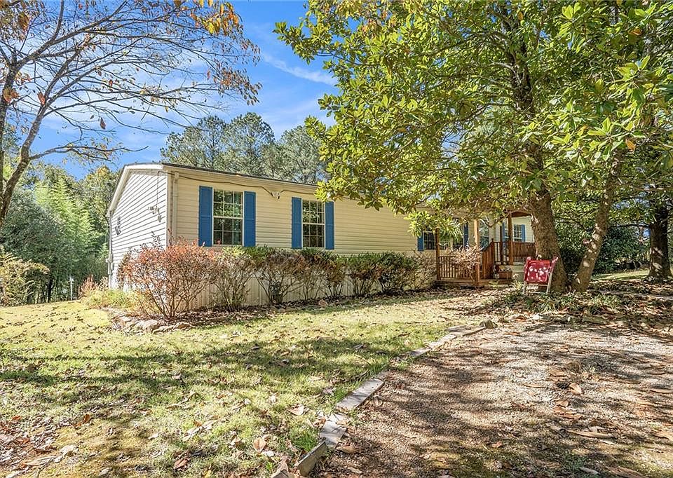 Charming, quiet, simple living at your fingertips! Come see this lovely house located in Ball Ground, which boasts the amenities of both private living and beautiful scenery. Sitting on 2 acres of land, the yard is adorned with gorgeous lilies and iris flowers. Also included in the back yard is an above-ground pool, great for entertaining in the warmer months. Inside is a wood-burning fireplace and spacious bedrooms with tons of closet storage. A designated dining space and a separate laundry area make for a roomy layout of house. The roof is under 15 years old and the water heater under 10 years old. This home is being sold as is.