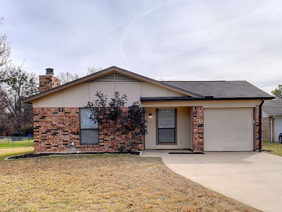 Super cute 3 bedroom 2 bath brick home on a huge corner lot! Spacious living room with wood burning fireplace. Laminate flooring in living. Very comfortable, well maintained home. All new energy efficient windows. Large fenced backyard. Close to Eagle Mountain Lake, city park, and schools. Ready for move in!