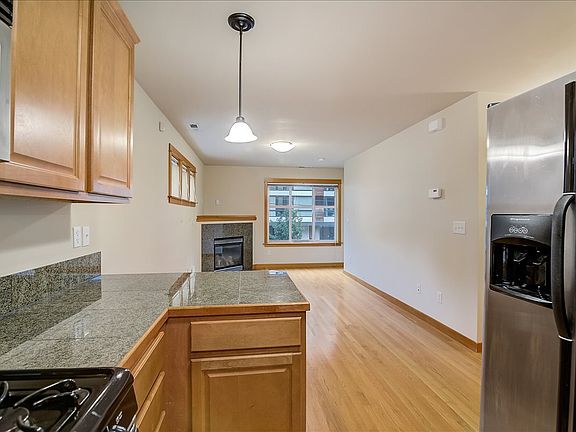 Gas fireplaceGalley kitchenHardwood floorsDouble-paned windowsClerestory windowBreakfast barTwo cozy carpeted brs