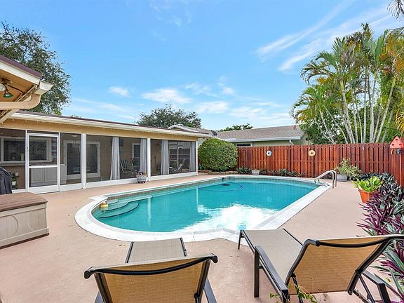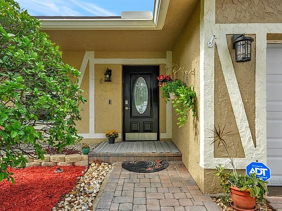 What an amazing pristine 4 bed 2 bath 2 car garage pool home on a Cul de sac street. This single-story home has a split bedroom floor plan with 2 updated bathrooms within the last 18 months, roof is 4 years new, hurricane impact windows & doors, screened in patio that leads to your secluded tropical large heated swimming pool with a variable speed pool pump that is surrounded by a brick paver patio deck. All tile & laminate floors, no carpet. Formal living room, dining room & living room. Recessed lighting. All rooms with large closets. Primary with a walk-in closet & another closet. Expanded paver driveway & walkway. Great home for entertaining. Great family neighborhood. Close to schools, shopping, dining & highways.
