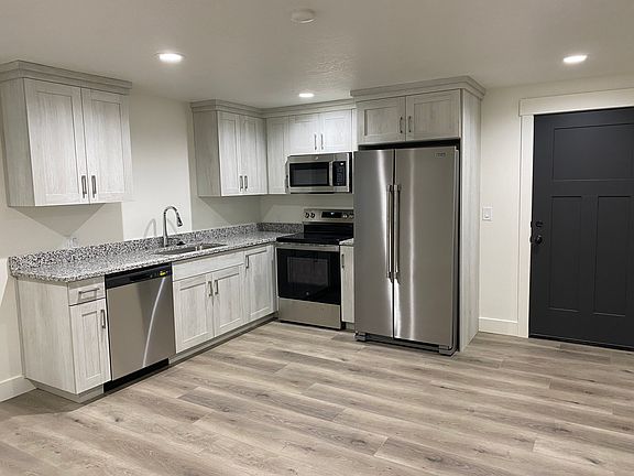 Utilities included. New. This 3 bed/1 bath basement has just been finished and is ready for you. Upgrades throughout. Beautiful, water resistant LVP flooring, upgraded carpet in all bedrooms, luxurious granite countertops, NEW stainless steel GE and Maytag appliances: refrigerator, oven/range, microwave, dishwasher. Enjoy the NEW in unit washer and dryer in the spacious laundry room. Dedicated parking spaces. Includes city utilities: water (includes sewer), electricity, gas, garbage. Across the street (Canyon Rd) from an EXCELLENT city park with splash pad and many other things that are fun for all.