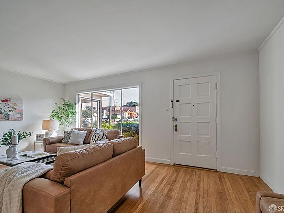This mid-century single story home offers comfort and convenience in a prime location just short blocks from Westlake Shopping Center, Southgate Avenue's shops and restaurants, Lake Merced Golf Course, Lake Merced, Fort Funston, and nearby beaches. Recently refreshed, it's been painted inside and out, with refinished hardwood floors and brand-new flooring in the kitchen, giving it a warm, move-in ready feel. Inside, a sun-filled living room with a classic fireplace welcomes you in, flowing to a formal dining room with sliding doors that open to the backyard - perfect for gatherings or everyday living. The kitchen includes a cozy eat-in area, while the full bath features both a separate shower and tub. Three comfortable bedrooms provide flexibility for family, guests, or a home office. The home also includes one-car garage parking and sits fully detached on all four sides, allowing abundant natural light and privacy. On a generous lot with both front and rear yards, it offers plenty of space for gardening, outdoor dining, or simply enjoying the coastal air. With mid-century charm and thoughtful updates, this is a wonderful opportunity in a desirable neighborhood.