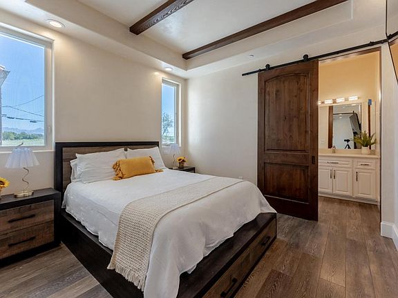 Discover unparalleled luxury in this stunning, nearly new gated estate nestled on over 17 expansive, flat acres. Perfectly designed for entertaining and hosting high-end events, this magnificent home boasts over 8,000 square feet of exquisite living space, featuring 7 spacious bedrooms and 6.5 elegant bathrooms. The estate includes an impressive 1,700+ square foot garage with 12-foot-high ceilings, ideal for car enthusiasts or additional storage needs. Step onto the expansive second-floor breezeway and terraces, spanning over 3,000 square feet-- an entertainer's dream, perfectly suited for a sports bar or alfresco gatherings. Surrounded by lush landscaping, the property is adorned with more than 60 mature olive trees, alongside thriving avocado, citrus (lemon, orange, mandarin), guava, and pomegranate trees, as well as striking agave plants, creating a serene and picturesque environment. Experience the perfect blend of elegance, comfort, and nature in this exceptional estate-- and an extraordinary opportunity to own a private sanctuary designed for both luxurious living and memorable entertaining. Schedule your private tour today and step into a world of luxury, comfort, and natural beauty.