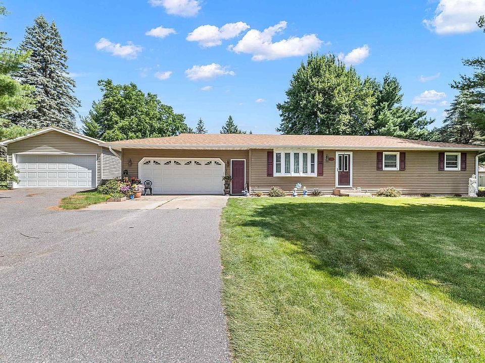 This 3BD, 3.5BA ranch home is conveniently located between Wisconsin Rapids and Plover, in the Kellner area. Grant Elementary is a few blocks away and Lake Wazeecha is well within walking distance. A newer asphalt driveway leads to both the attached 2 stall garage and newer detached garage (2014 build). The majority of the attached garage has been insulated and features a wall heater that runs on natural gas. From the garage, you can access the home or basement. Just off the kitchen, the home features a half bath with main floor laundry. Seller built a platform to aid in loading both the washing machine and dryer. Basement has access from main floor with a spur off the entrance, prior to kitchen. Kitchen, which features newer flooring and appliance package, has many linear feet of counter tops, upper and lower cabinets for storage. A sizable pantry is positioned with ease of use in mind. The spacious primary bedroom coupled with the updated en-suite, boasts a low step shower pan. Another full bathroom, accessed directly off the hallway, leads with an oversized soaker tub.,Newer carpet exists throughout the tastefully remodeled lower level, including the family room and third bedroom. An expansive full third bathroom is located in the lower level with quick access from the garage, serving as an area to conveniently clean up. Newer pex plumbing throughout majority of home. Seller represents water heater (2018) and central air (2022). Stamped concrete patio edging and a beautifully maintained landscaped backyard, accessed through a patio door, is designed to entertain. Storage of toys and equipment is possible with the additional detached garage with dual overhead doors for easy access from the backyard (24x18), storage shed (12x9) with attic, and carport (20x12). This ranch boasts tremendous value with its prime location, storage opportunities, and excess of bathrooms. This home is priced for action at 279,900. Schedule your private showing SOON!
