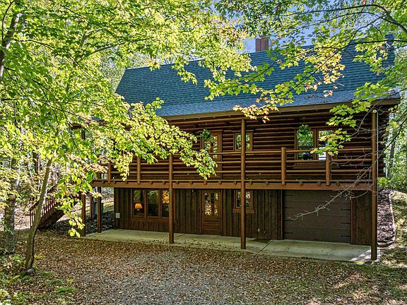 Hardwood floorsCovered porchStunning floor-to-ceiling stone fireplaceTraditional-style cedar logStainless steel appliancesUpdated kitchenLakeside deck