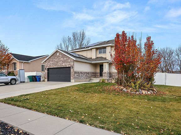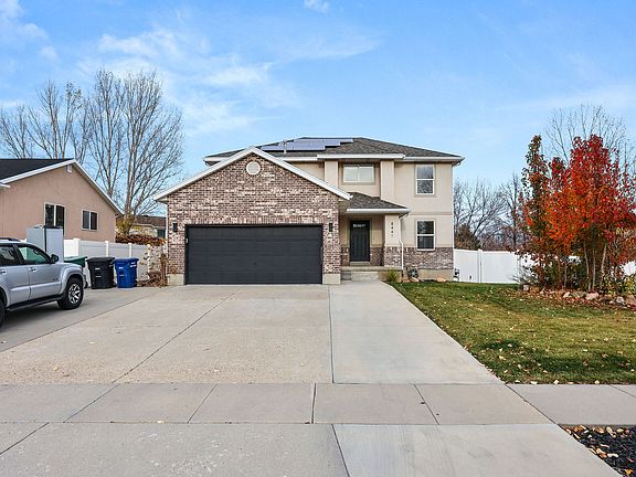 This beautifully upgraded home features an open-concept main level illuminated by LED can lighting throughout - all on dimmers for the perfect ambiance. The entire home showcases newly replaced cabinetry with elegant quartz countertops, including a stunning waterfall island and full-height backsplashes in the kitchen, pantry, and master bath. Enjoy panel-ready luxury appliances, a custom vent hood, and glass display cabinets with integrated LED lighting. The master suite offers a luxurious retreat with full-height tile walls, custom cabinetry, quartz countertops, and a custom-built walk-in closet. All bathrooms feature quartz/marble surfaces and tile walls surrounding the tubs. The basement includes a full second kitchen with a panel-ready dishwasher, LED lighting, quartz countertops, and a full-height backsplash-ideal for entertaining or multi-generational living. Throughout the home, you'll find custom lighting fixtures, pendant lighting by the master nightstands, hardwood flooring on the main level, engineered hardwood in the basement, and laminate flooring upstairs. All electrical wall plates are sleek and screwless for a clean, modern finish. Both the main level/basement and upper level are equipped with **separate high-efficiency furnace and A/C systems**, plus a **tankless water heater** for maximum comfort and energy savings. Most windows are fitted with **pull-down roller shades** for a modern touch and added privacy. Additional features include a full sprinkler system and **solar panels**, offering sustainability and reduced utility costs. This home perfectly blends modern luxury, thoughtful design, and energy efficiency - a truly move-in-ready gem!