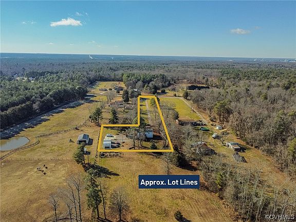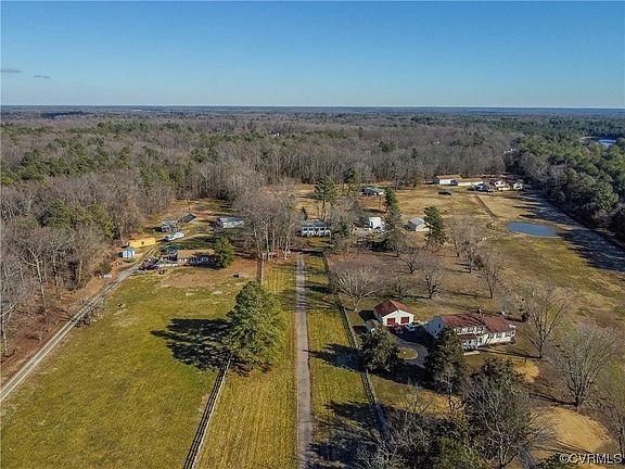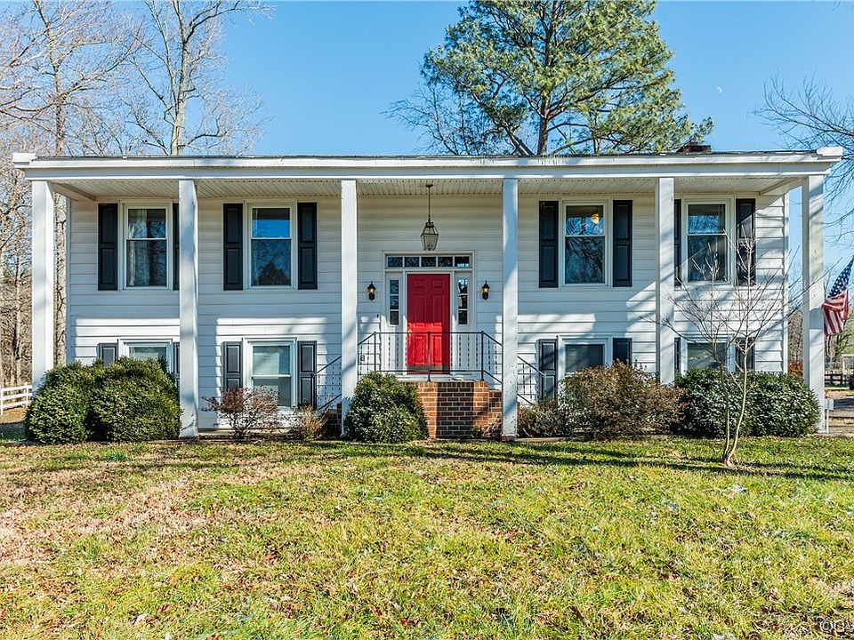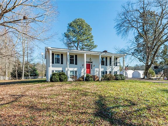 Located on a 2+ acre lot in Varina Acres, enjoy peaceful scenic views and privacy as the next lucky owner of this gorgeous property! As you head down the long, paved driveway lined with green grass and white picket fencing, you'll feel welcomed right at home to the stunning 2-story at the end of the drive. Step inside to a spacious split foyer where you can head downstairs to a fully finished walk-out basement or upstairs to the main living area. As you walk upstairs you are welcomed into a large family room with several windows allowing natural light to fill the space. Around the corner is the spacious eat-in kitchen with stainless appliances, ample counter and cabinet space, and separate dining area with french door access out to the back deck. Down the hallway is a fully remodeled bathroom with shower/tub and new vanity as well as two spacious bedrooms. Downstairs you'll find that the basement offers plenty of bright lighting through the many windows in each room. On the basement level there are two large bedrooms, one with brand new carpeting, a full bathroom, laundry area, and large additional space with beautiful brick fireplace- the perfect place for entertaining, storage, or to make your own! From the french doors downstairs you can walk-out to the back deck and yard. Outside you'll find large storage buildings, a workshop, large deck, and an expansive grass yard on your 2+ acre property. Additional features of this home include a NEW oversized heat pump, circle gravel drive + additional paved parking space, outside power with breaker panel & RV/Generator hookup, and whole home water treatment & softening system! Don't miss out on this goreous property- this is a must see!