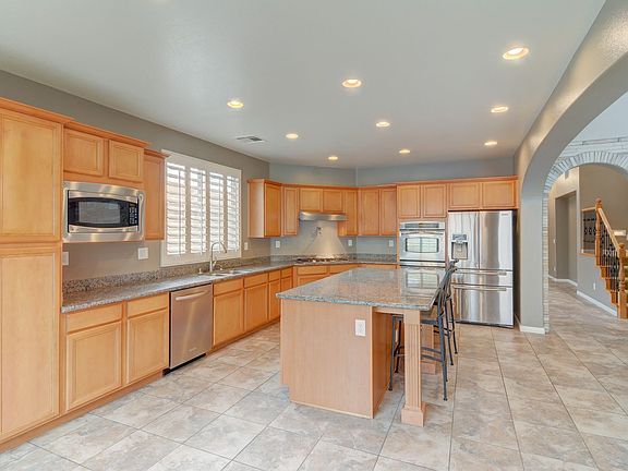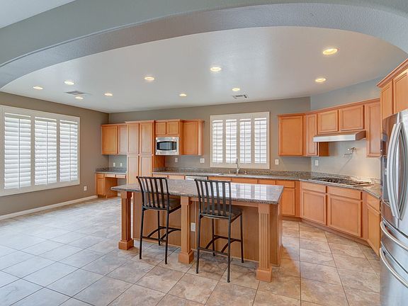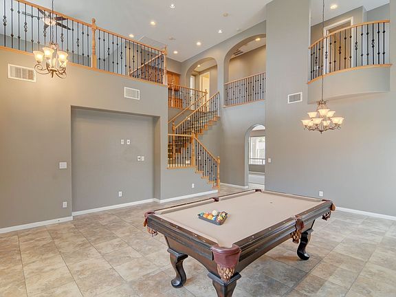 Welcome to this beautiful and spacious 4-bedroom, 3-bathroom home located in the highly sought-after Mountains Edge community. This well-designed two-story home offers a warm and inviting layout with tile flooring throughout the first floor and a front living room featuring vaulted ceilings for an airy, open feel. The gourmet kitchen is perfect for any home chef, complete with granite countertops, all appliances included, a center island, cooktop, and a built-in work area. The cozy downstairs family room offers a built-in entertainment center and a fireplace, perfect for relaxing evenings. Upstairs, enjoy a large loft with a ceiling fan and a spacious primary suite featuring a second fireplace, private balcony, and walk-in closet. The backyard oasis is perfect for entertaining, with a private pool and spa, elevated deck, and ample space for outdoor enjoyment. This home has it allcomfort, luxury, and space!