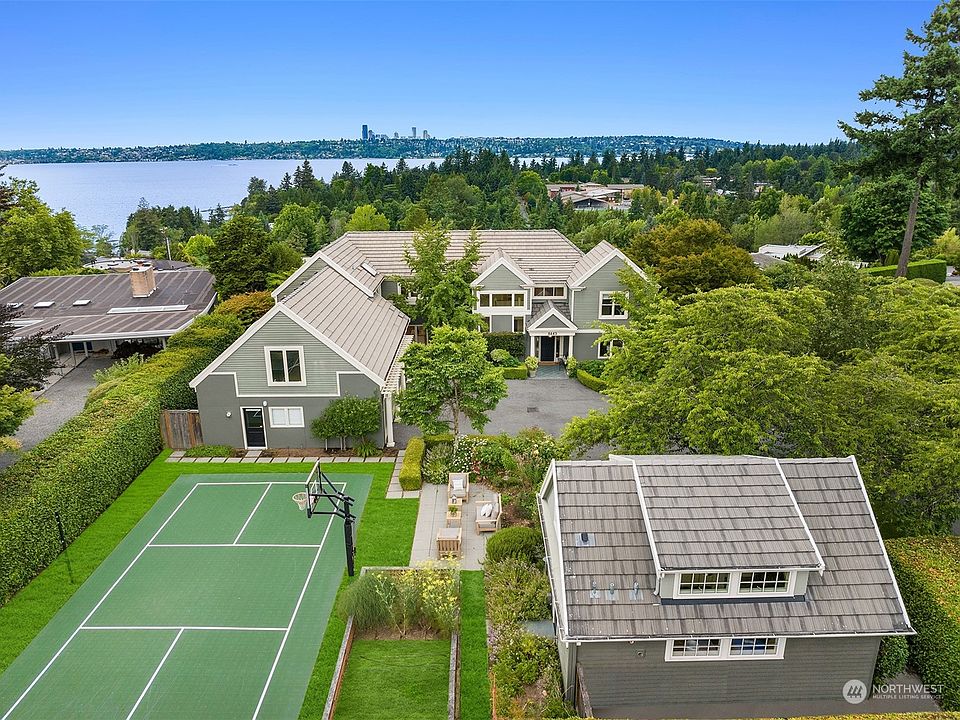 Presenting an exquisite & private view oasis in Medina Heights! Upon entry, you are welcomed w/ soaring ceilings, impeccable details & breathtaking views! The stunning chef’s kitchen is bright & modernized. Chic & designer-done formal living, dining, family room + den. Gracious primary suite w/ view deck + 3 additional bedrooms up & the most fabulous play room for ping pong & media! A harmonious blend of indoor / outdoor living, spaces flow to an amazing view patio w/ thoughtful & lush grounds, providing the most serene sanctuary w/ fragrant roses & fruit trees. The sweetest art studio / guest house & an awe-worthy sport court, a true entertainer’s compound. This is an incredibly special crown jewel in the heart of Medina, not to be missed!